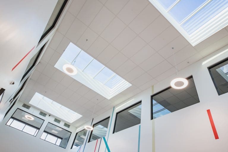 Featuring a double storey atrium that floods the new extension with natural light, McAvoy utilised non-combustible insulation throughout, ensuring the building benefits from high levels of temperature consistency at all times of the year.