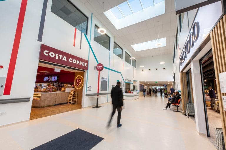 McAvoy delivered a new double storey main entrance as well as 1,142sq metres of multi-use office and retail space at Basildon University Hospital within a 29-week programme. Visitors and staff at the hospital can now enjoy a large main entrance foyer with a new reception area and a retail concourse offering familiar High Street names such as Costa Coffee, M&S Food, WH Smith and Stock Shop.